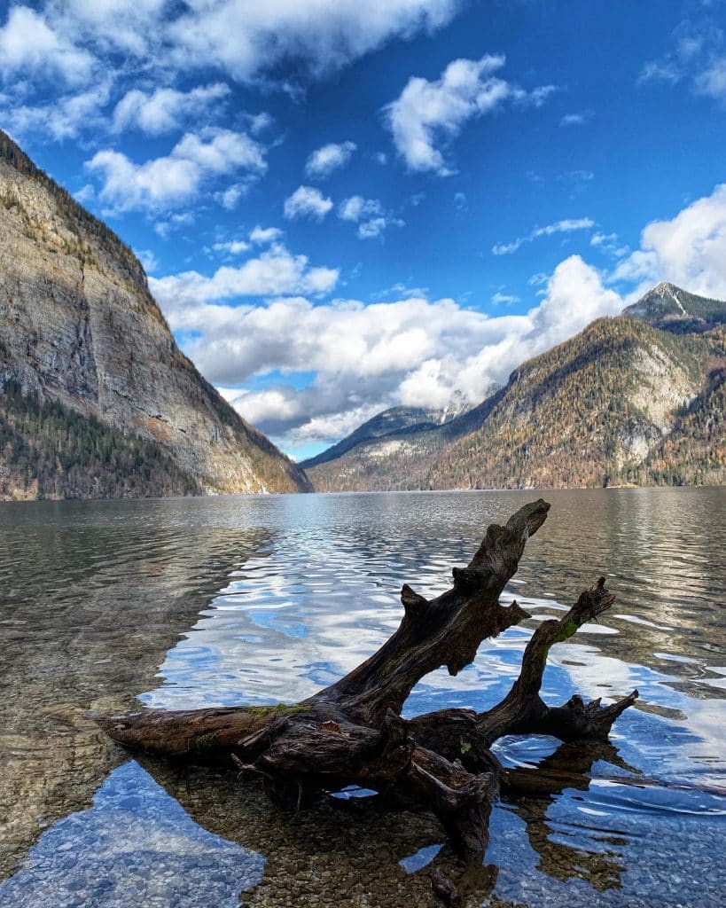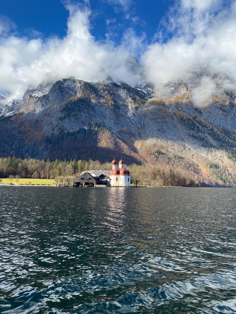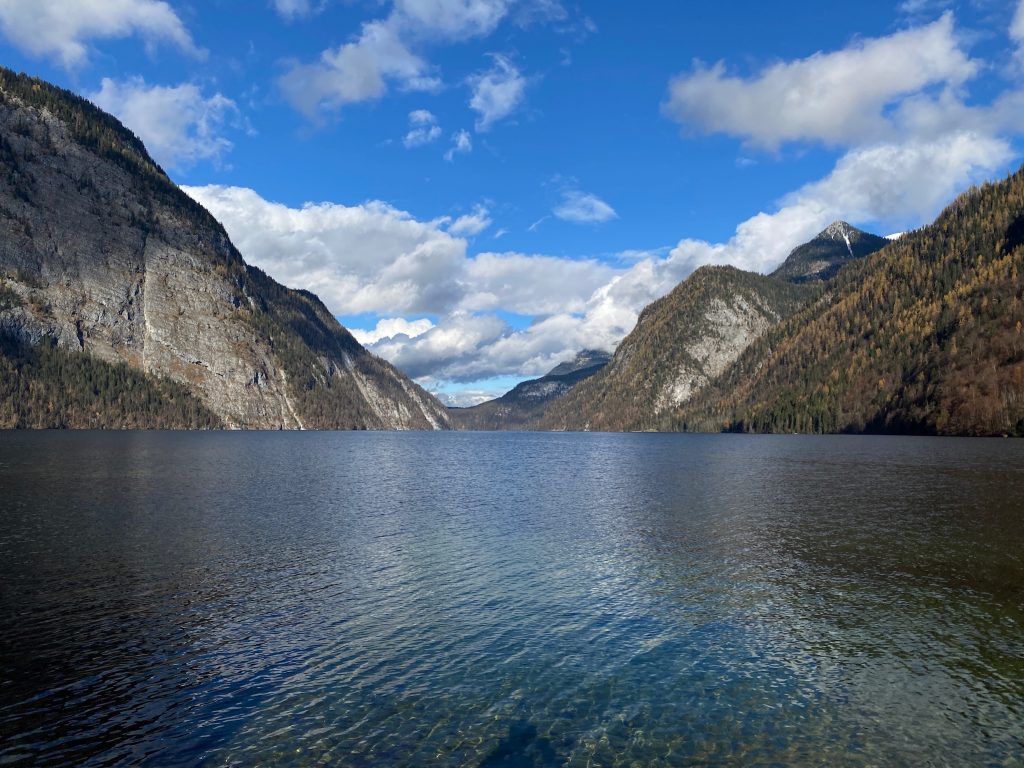 Der Königssee ist ein malerischer Gebirgssee im Nationalpark Berchtesgaden in Bayern. Er ist von steilen Berghängen umgeben und gilt als einer der saubersten Seen Deutschlands. Mit dem Boot kann man über den See fahren und die berühmte Wallfahrtskirche St. Bartholomä besuchen, die auf einer Halbinsel liegt. Auch die einheimischen Kühe nutzen das Boot, um im Sommer zu den Almen zu gelangen. Der Königssee ist ein beliebtes Ausflugsziel für Naturliebhaber, Wanderer und Kletterer, die die Schönheit der Berchtesgadener Alpen genießen wollen. Am südöstlichen Ende des Sees liegt der kleinere Obersee, der von einem Wasserfall gespeist wird und einen herrlichen Blick auf das Steinerne Meer bietet.